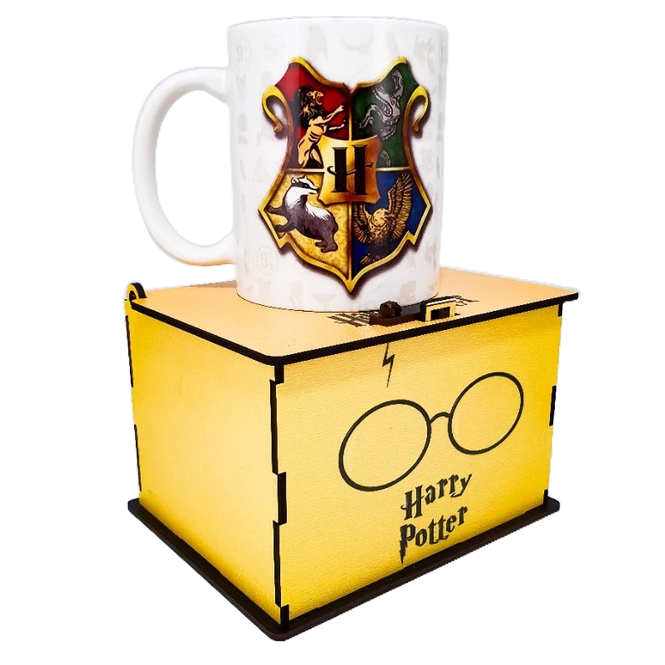 Caneca de porcelana Harry Potter + Caixa em mdf estampada