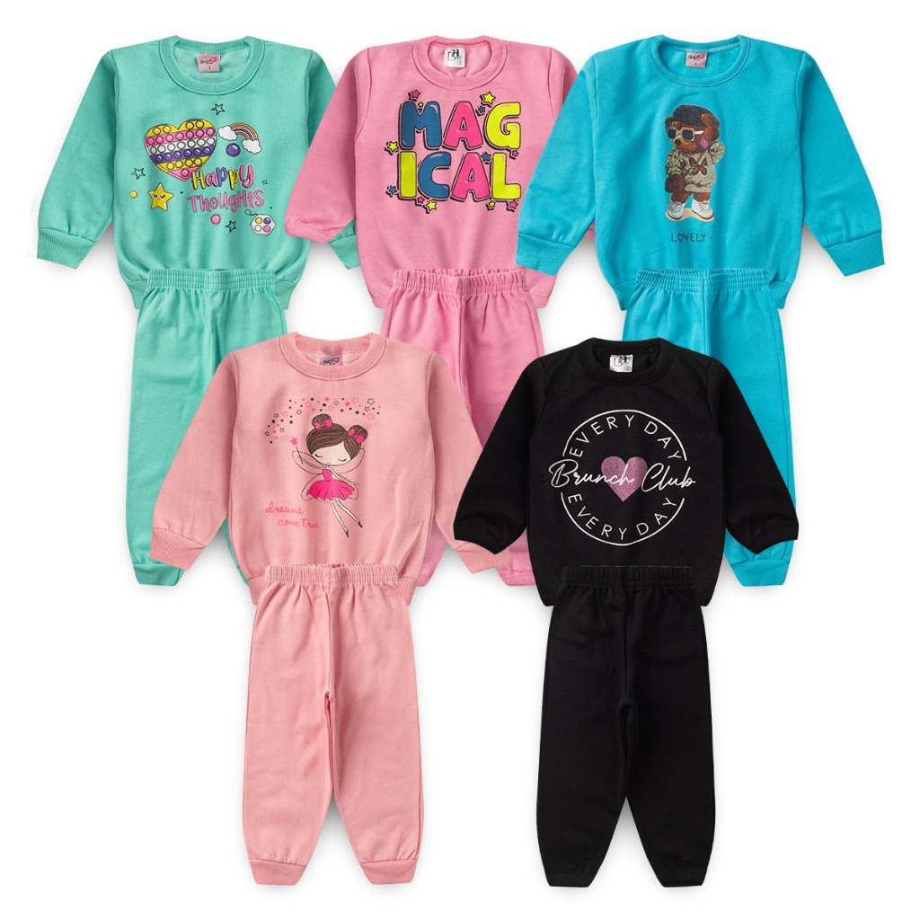 Kit 10 peças de roupas conjunto moletom feminino infantil menina inverno promoção tamanho 1 2 3 4 6 8