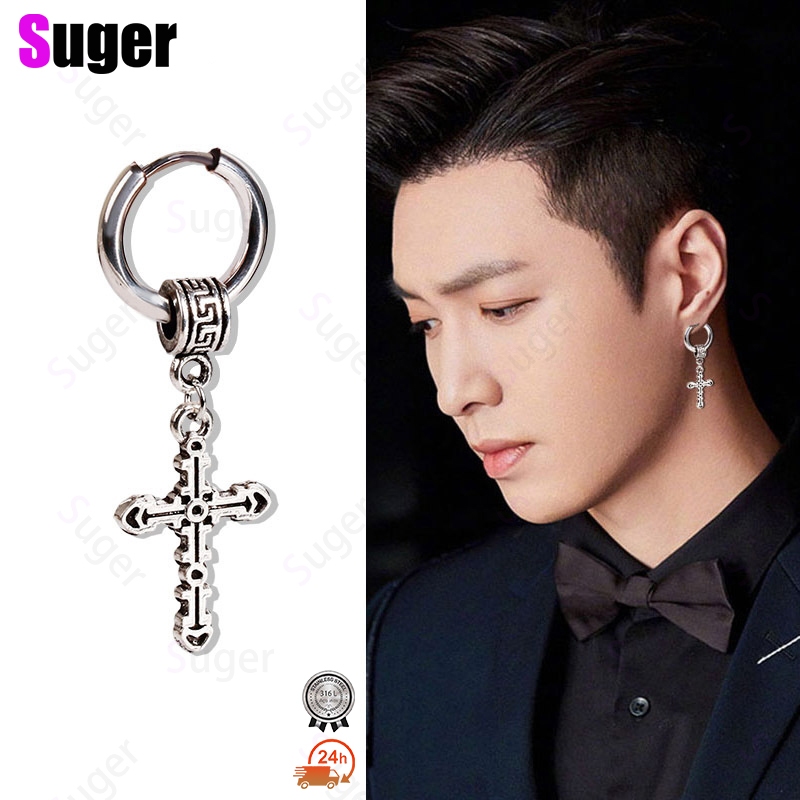 Brincos de Aço Inoxidável Masculinos Bonitos e Gravados em Cruz Fivela de Orelha Hip-Hop Rock Jewelry