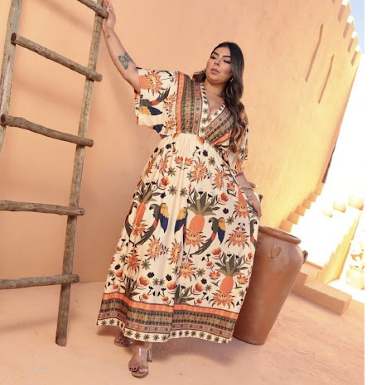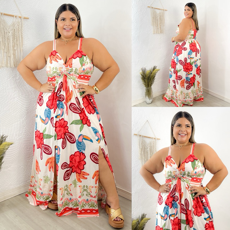 Vestido Plus size, Vestido inspiração Farm, Vestido Mid, Vestido longo.