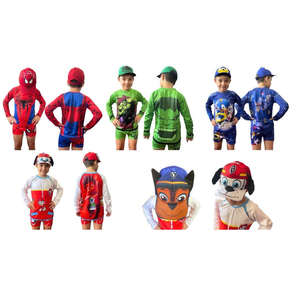 Conjunto Sunga Infantil + Camisa UV + BONÉ para Meninos Proteção Solar Criança Praia