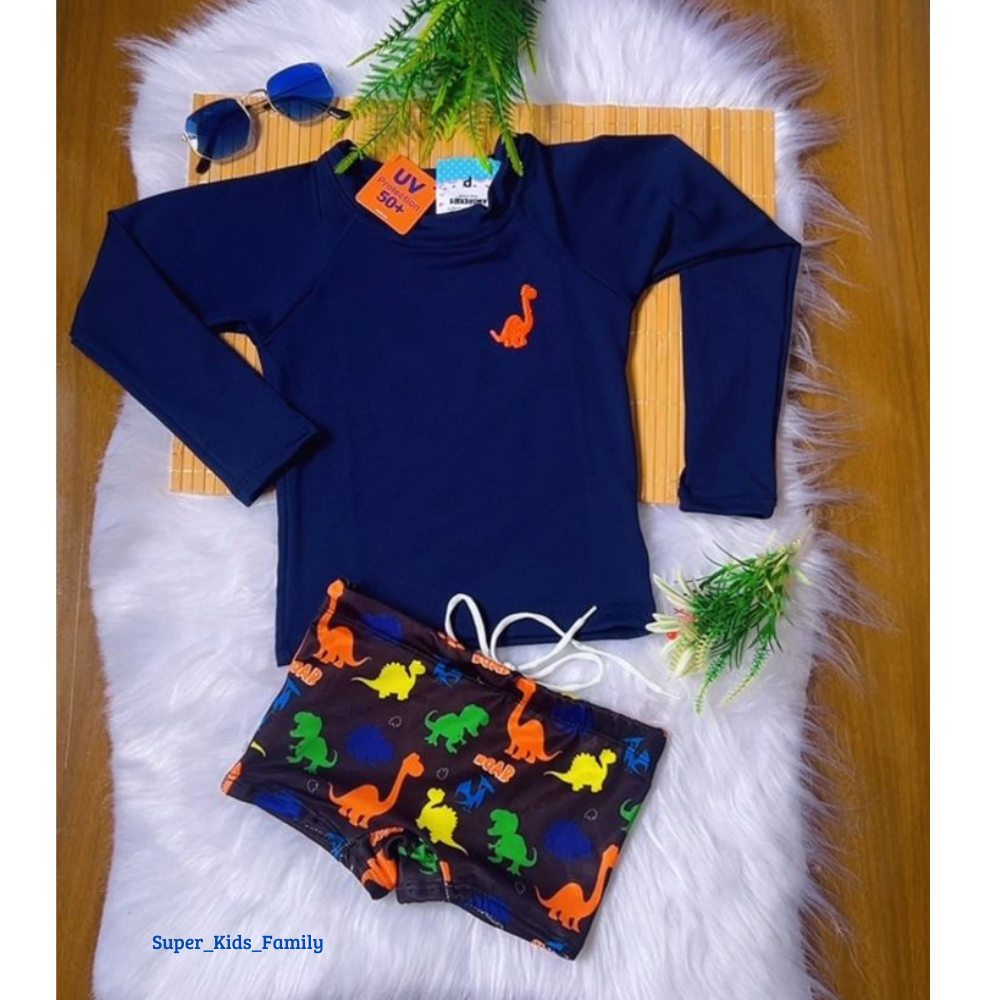 Conjunto Sunga BOXER Infantil Camisa Proteção Térmica UV 50+ Blusa Praia Piscina Meninos