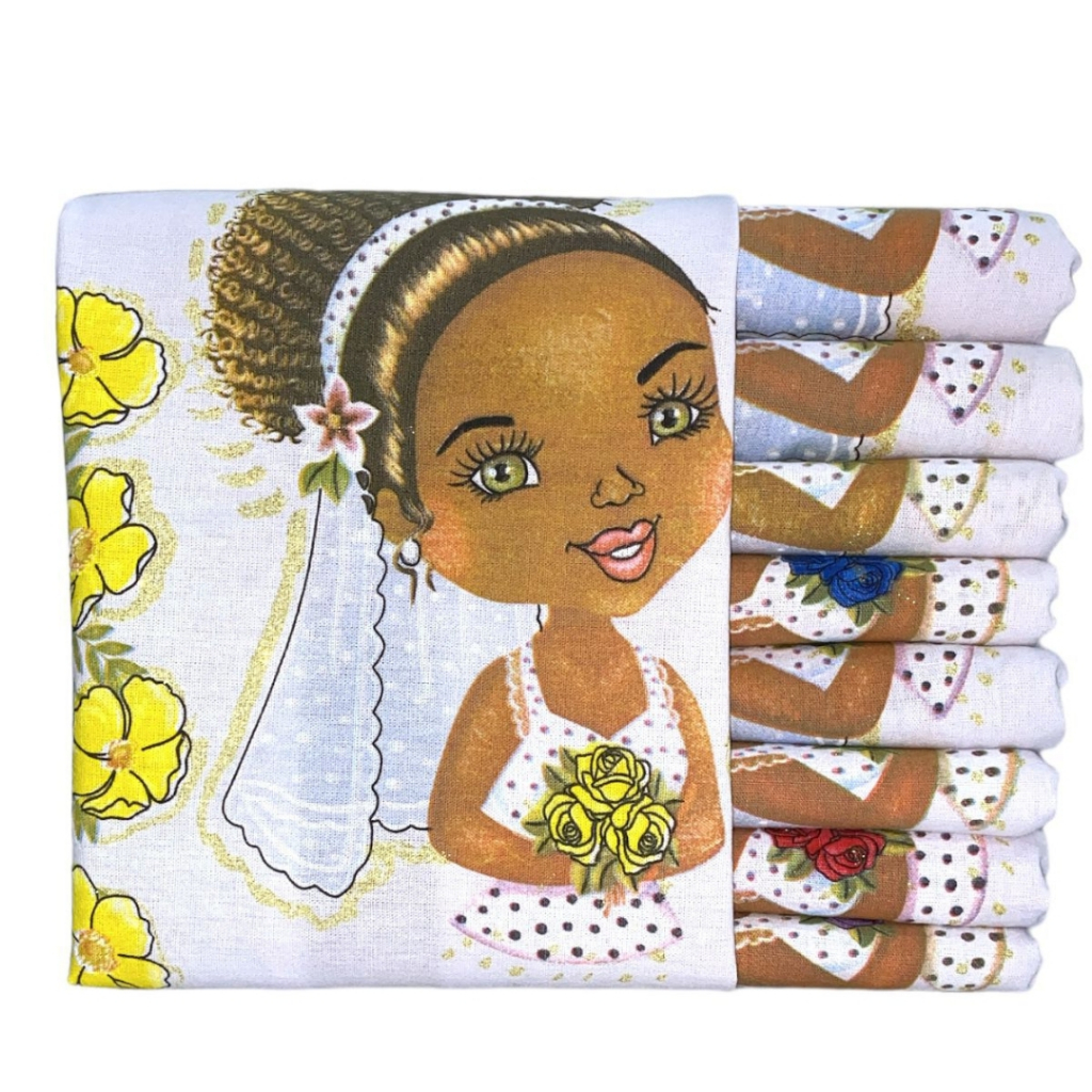 Pano De Prato P/ Artesanato Boneca Noivinha C/ Glitter Kit C/ 5