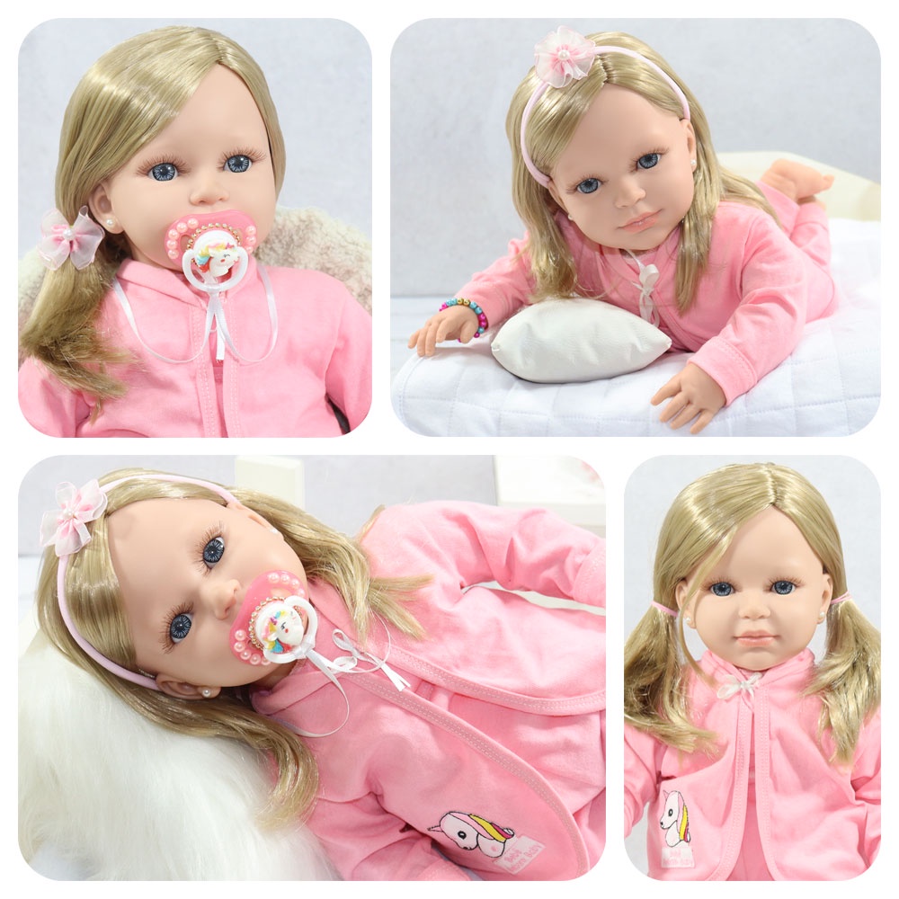 Boneca Reborn De Silicone De 19 Polegadas Meadow Com Cabelo Pintado À Mão Vinil Macio Realista Bebê Recém-Nascido Menina