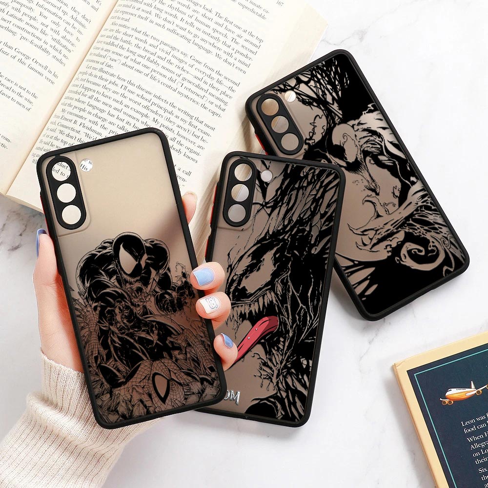 Marvels Spidermans Linha Venom Arte Armadura À Prova De Choque Capa De Silicone Para Telefone Samsung Galaxy S23 Ultra Cases S20 S21 FE S22 5G S10 Plus Lite Traseira Preta Transparente