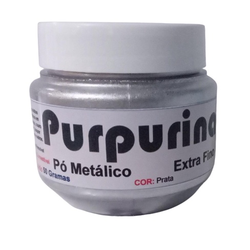Purpurina Pó Metálico Prata Extra Fina de Alta Qualidade Pote com 50 Gramas