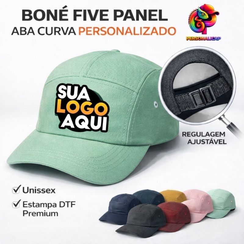 Boné five panel tactel Basebol Aba Curva Masculino e Feminino Regulagem Fitão 5 panel