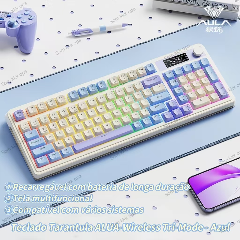 Teclado Gamer Mecânico Sem Fio Bluetooth AULA S99 Pro 2.4G USB RGB Portátil Pc Notebook Celular