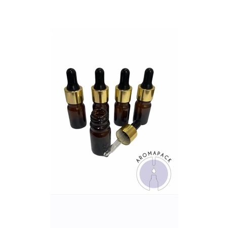 10 Frascos Conta Gotas 5ml Vidro Âmbar Luxo Bulbo e Canula Tampa Dourada Bulbo Preto Óleo Essencial