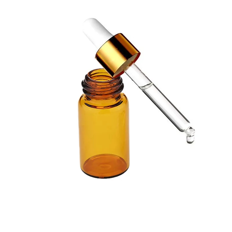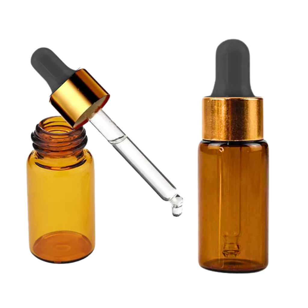 Kit 10 Frascos De Vidro 5ml Âmbar Conta Gotas Tampa Dourada