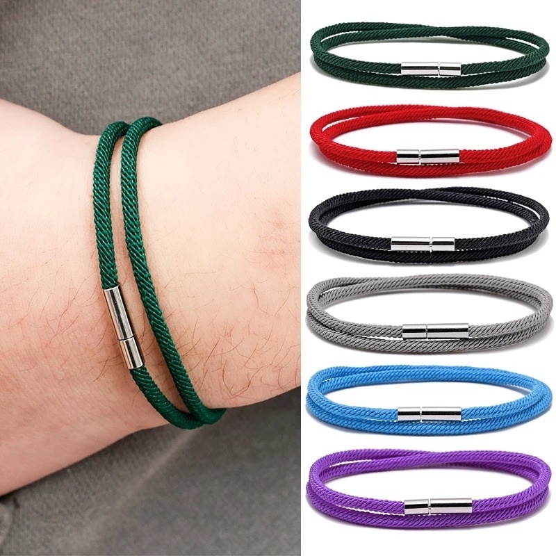 2/4 Pçs Pulseira De Casal De Corda Com Fivela Dupla Camada Cor Lisa/Tecido Simples