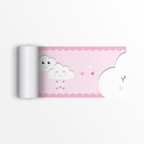 Faixa Decorativa Infantil Papel De Parede Nuvens Rosa Branco