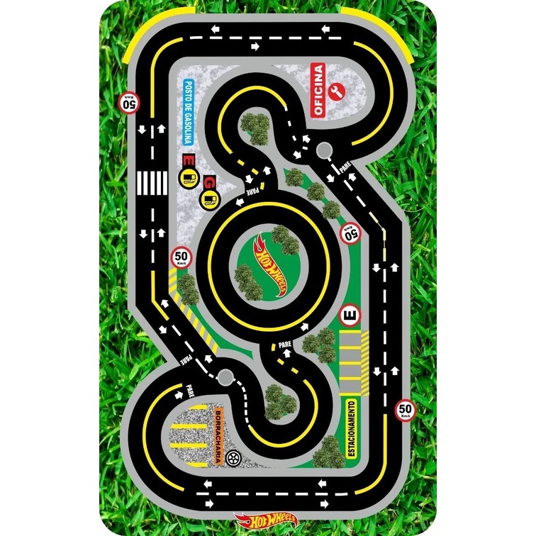 Tapete de lona Ilustrativo Pista de Carrinho para Hot Wheels 67x100cm Play mini