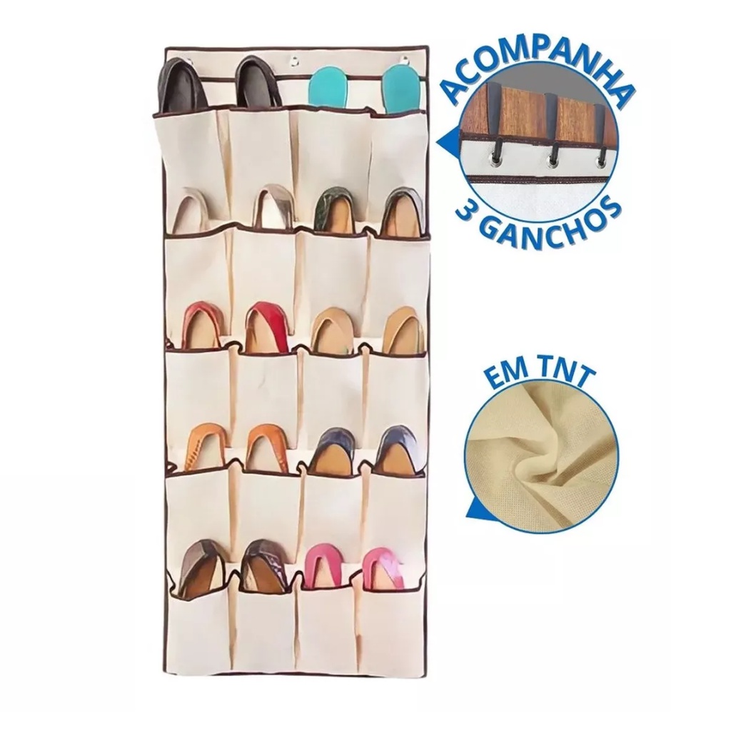 Sapateira de pendurar atrás da porta com 24/28 divisórias