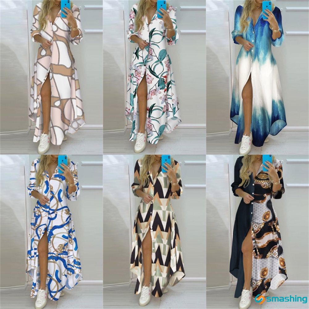 Listrado Impresso Senhoras Vestido De Camisa Longa Bohemian Moda Praia Botão Novo Estilo Carta De Correspondência De Grandes Dimensões Robe