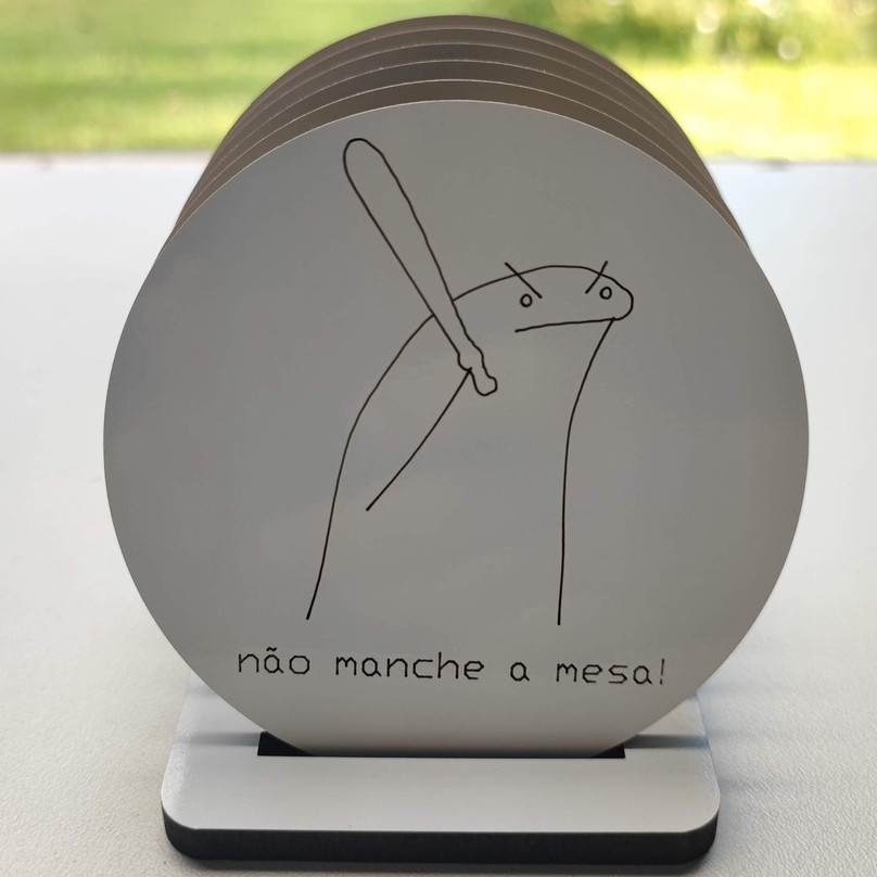 Kit com 6 Porta Copos - Descansos de copos - "Não manche a mesa" - MEME Flork - MDF 3mm com suporte em MDF 6mm - Design