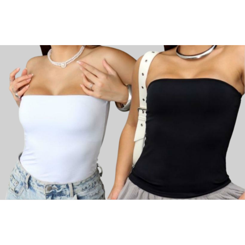 Kit 2 Cropped Tube Top Faixa Tomara Que Caia Duplo Croped Suplex Blogueira Básico Premium Tubinho