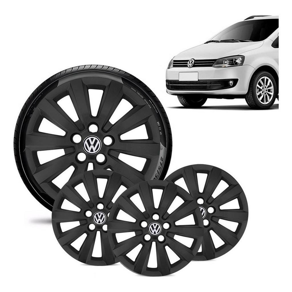 Jogo 04 Calota Preta Fosca Volkswagen Vw Fox 2014 Polo Aro 15 Volkswagen