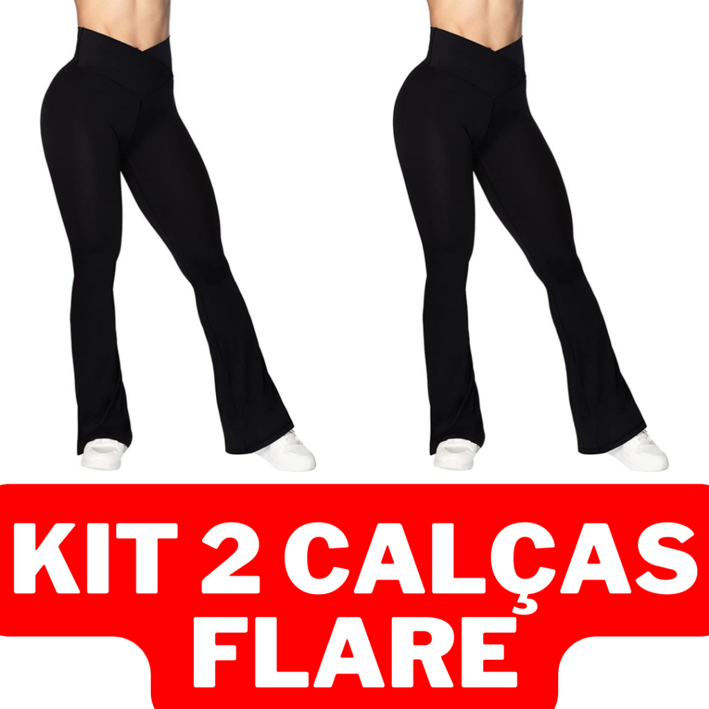 Kit 2 Calça Flare Bailarina Suplex Cintura Alta Boca De Sino