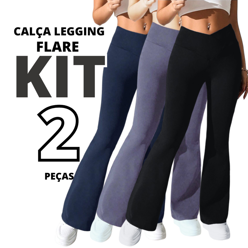 Kit 2 Calça Legging Flare Cintura Alta Bailarina Boca De Sino Feminina