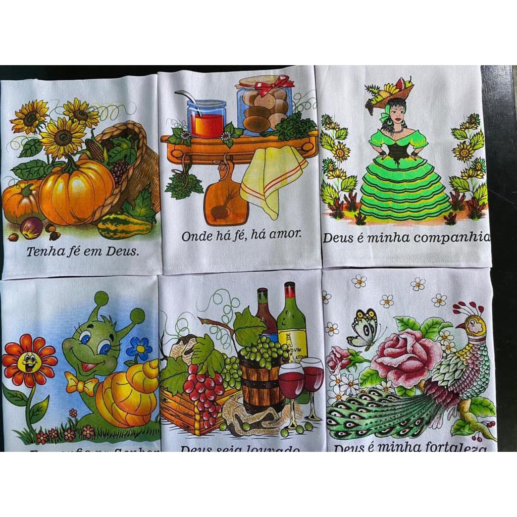 Pano De Prato Atoalhado Atacado Gourmet Kit Com 6 Peças Limpeza Cozinha Estampado