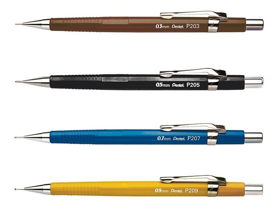Kit C/4 Lapiseira Pentel 0.3, 0.5, 0.7 E 0.9 P200 Sharp!