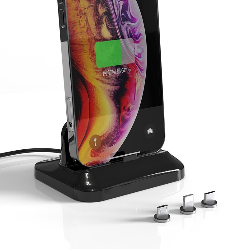 Estação De Carregamento Rápido Magnético 3 Em 1 Com Conector Base De Suporte De Dock Para Dispositivos Micro USB Tipo C IO/S Android
