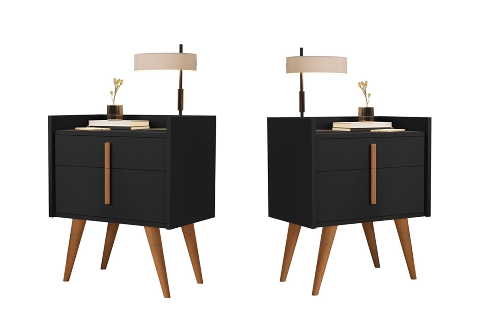Kit 2 Mesas de Cabeceira 1188 Com Porta e Gaveta Pés Palito Preto - JM Casa dos Moveis