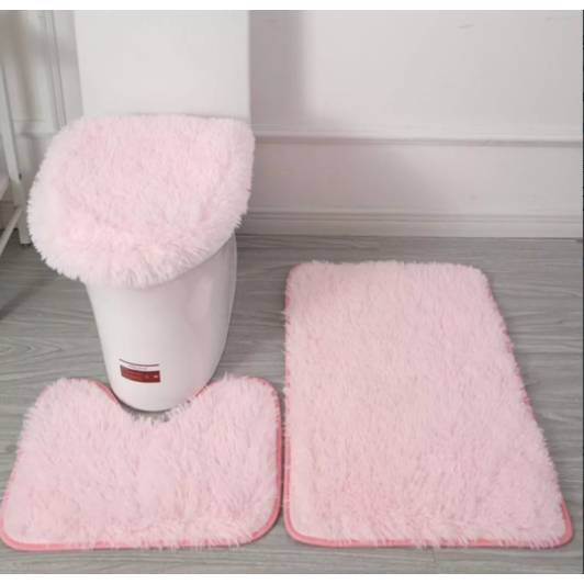 Kit 3 Tapete Para Banheiro Conjunto 3 Peças Tapetes Luxo Jogo de Banheiro Felpa Aveludada Com Solado Promoção