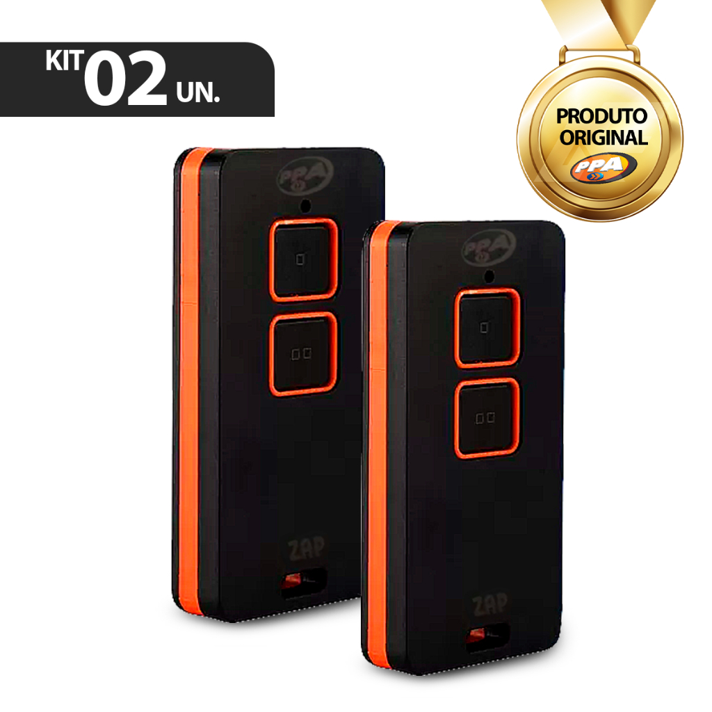 Kit 2 Controle Remoto PPA Zap 2 Botões Portão Alarme Preto/Laranja 433,92MhZ