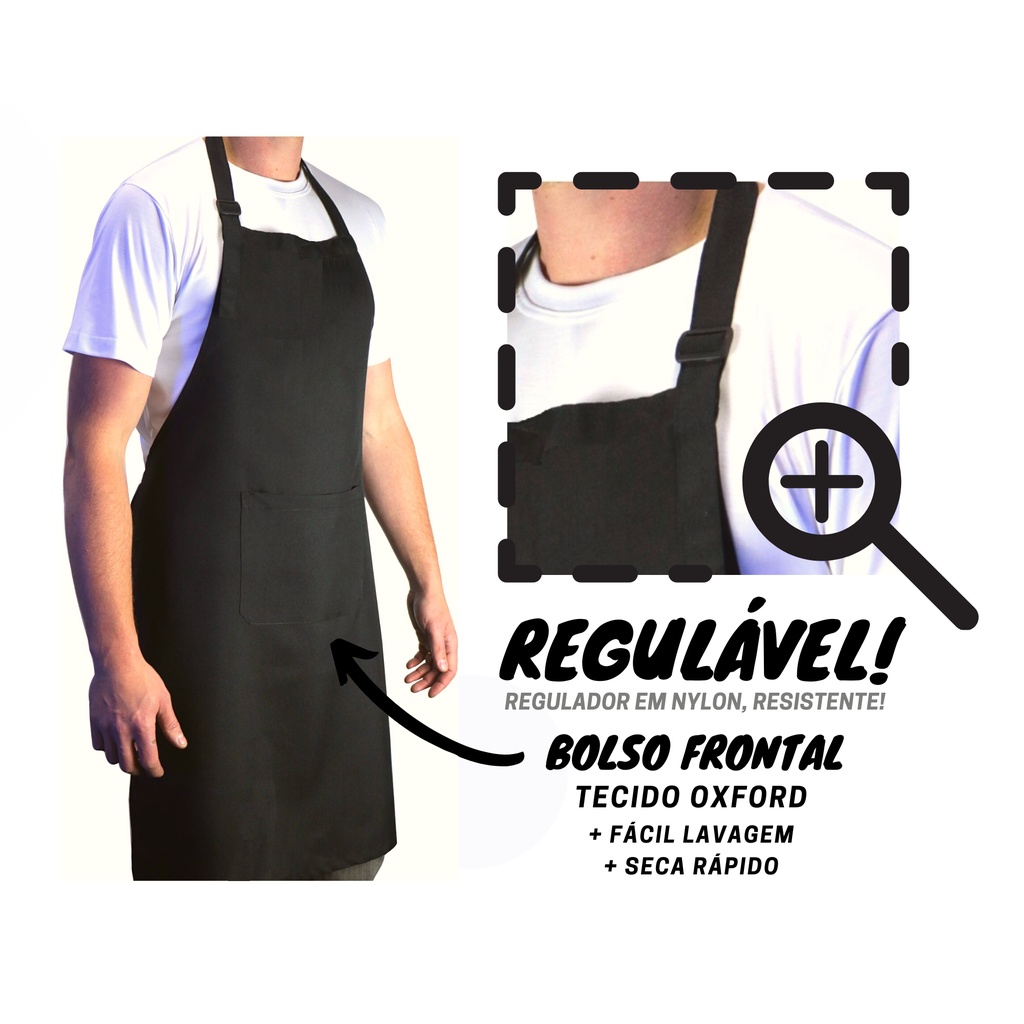 AVENTAL oxford regulável com bolso PRETO, MARROM OU BRANCO masculino feminino unisex cozinha hamburgueria chef restaurante garçom garçonete Lanchonete Pizzaria Evento