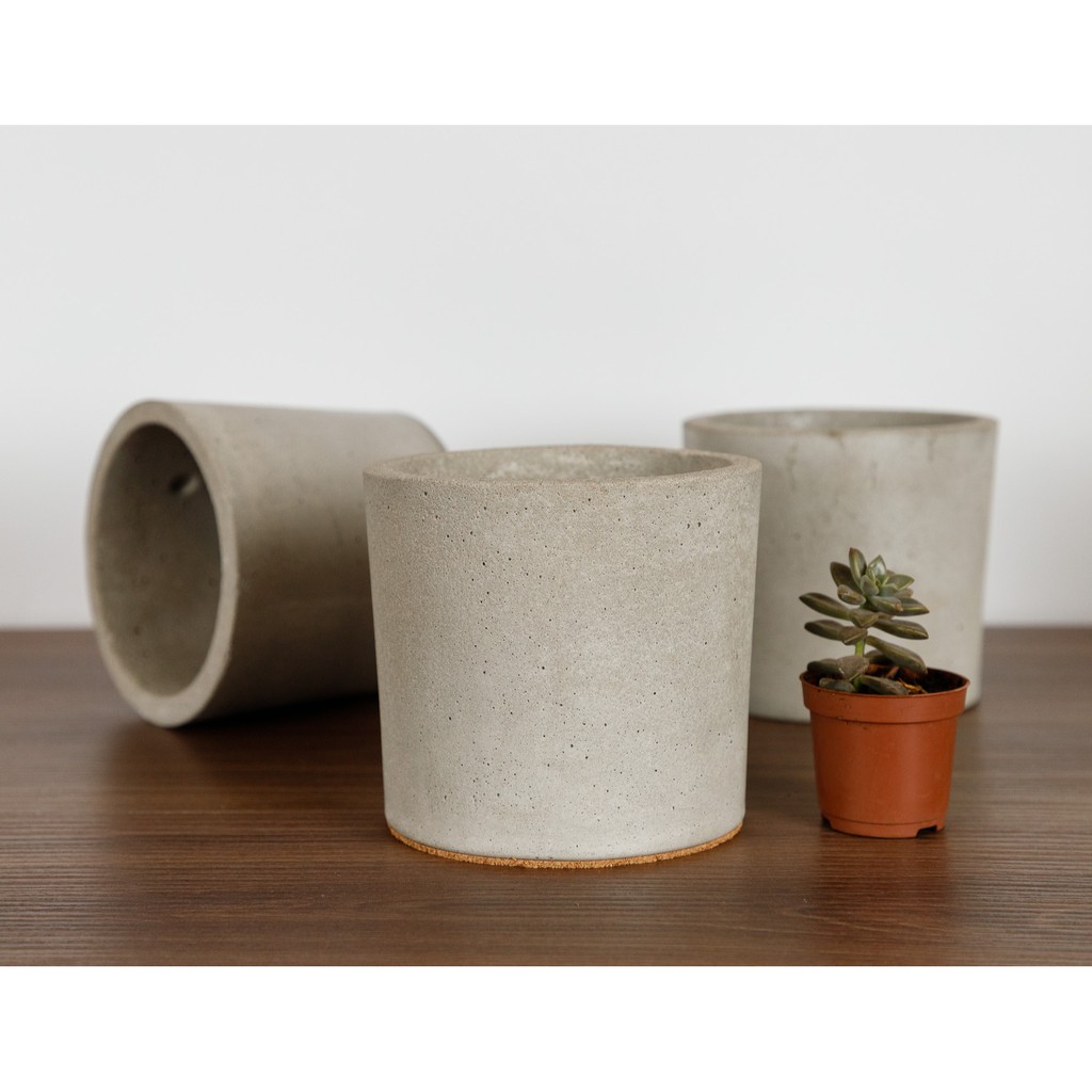 Vaso de Concreto Redondo Grande Cimento Artesanal Kit Com 2 Unidades