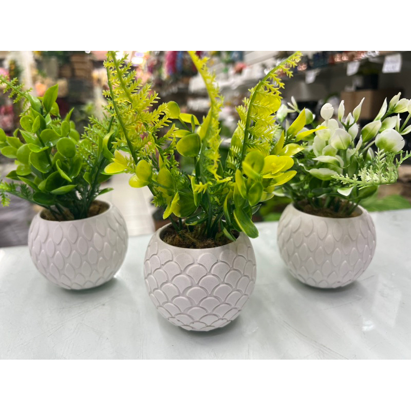 Kit com 2 Arranjos de Planta no Vaso Redondo de Gesso
