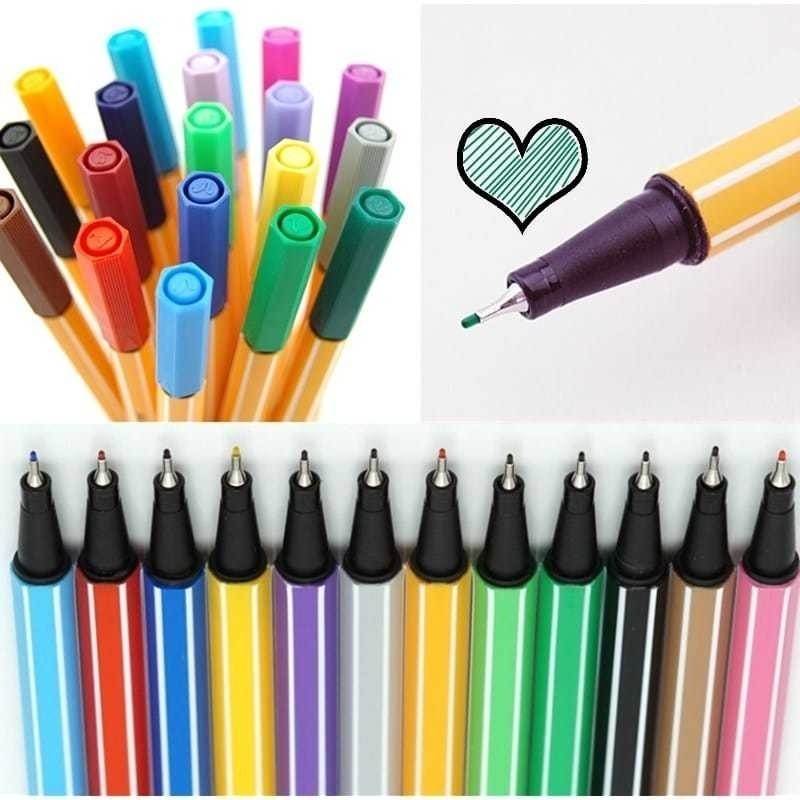 Kit Com 6/12/24 Canetas Coloridas Fine Line Ponta Fina 0.4 mm Escolar Tipo Stabilo Estampa Colorido/Caneta extrafina/Multiuso/Tinta à base de água/ViVi APENAS/ Com diversas cores e design único/Promoção