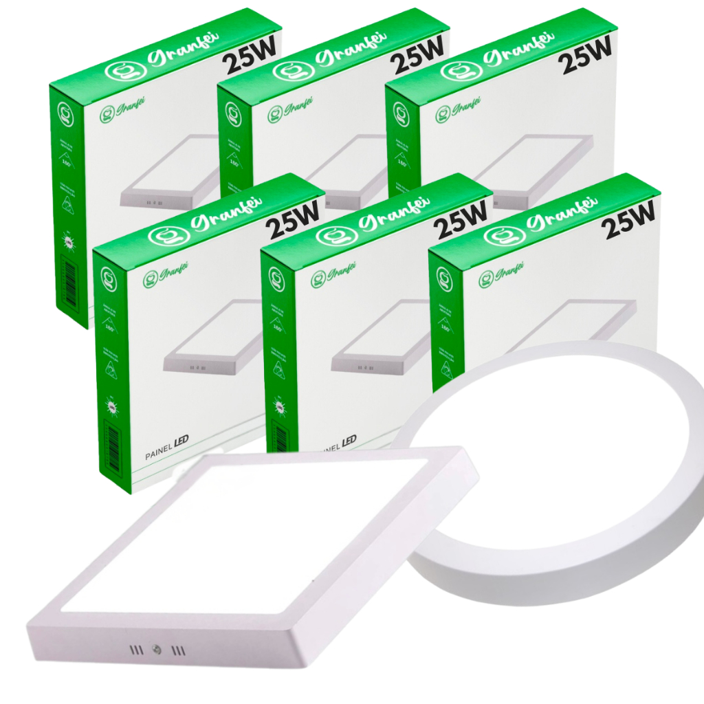 Kit 5 ou 10 Luminária Painel Plafon Led 25w Sobrepor Quadrado Redondo Quente (3000K) Neutro (4000K) Frio (6500K)