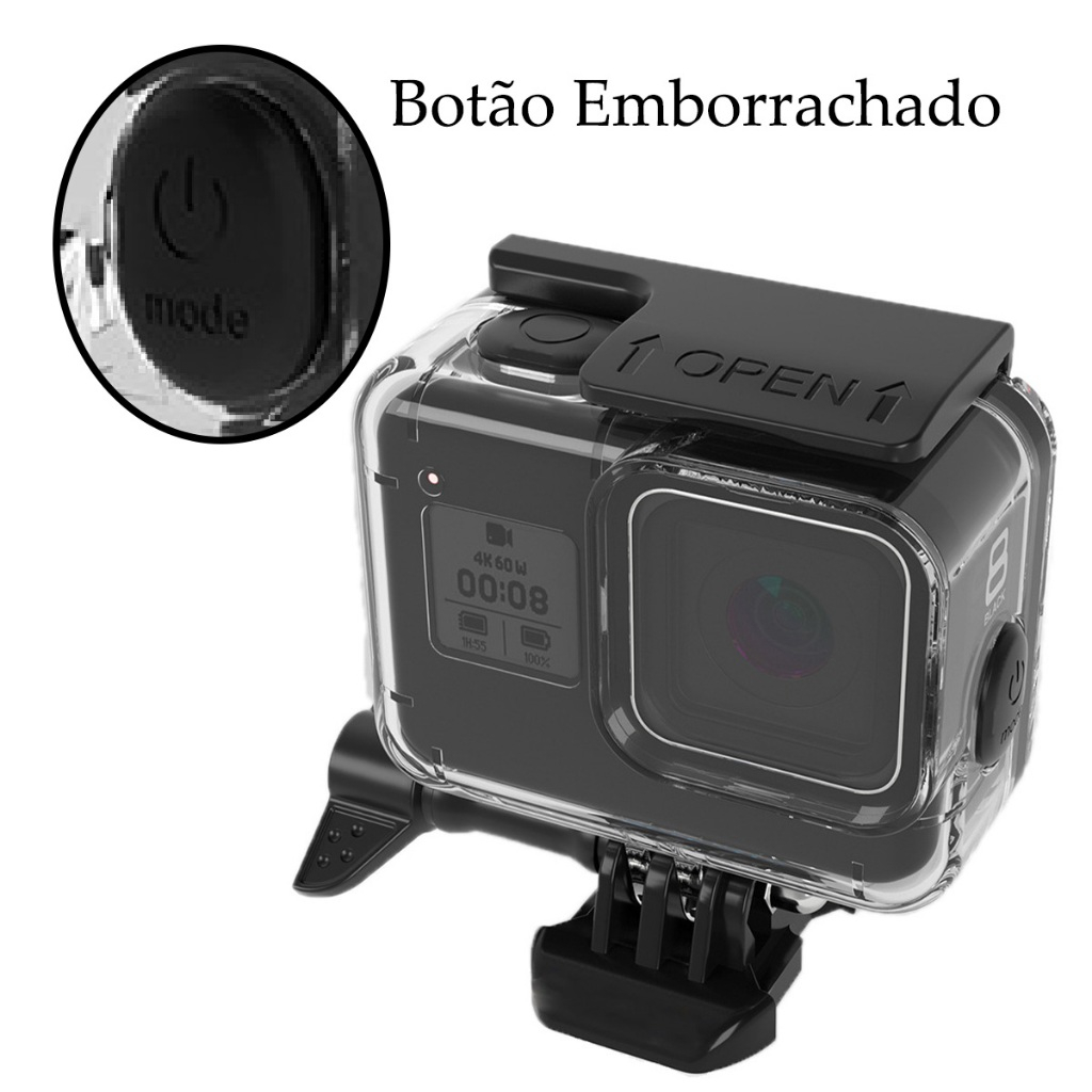 Caixa De Estanque Com Botão de borracha Para Gopro Hero 8 Black - A Prova D'água Hero 8 Black
