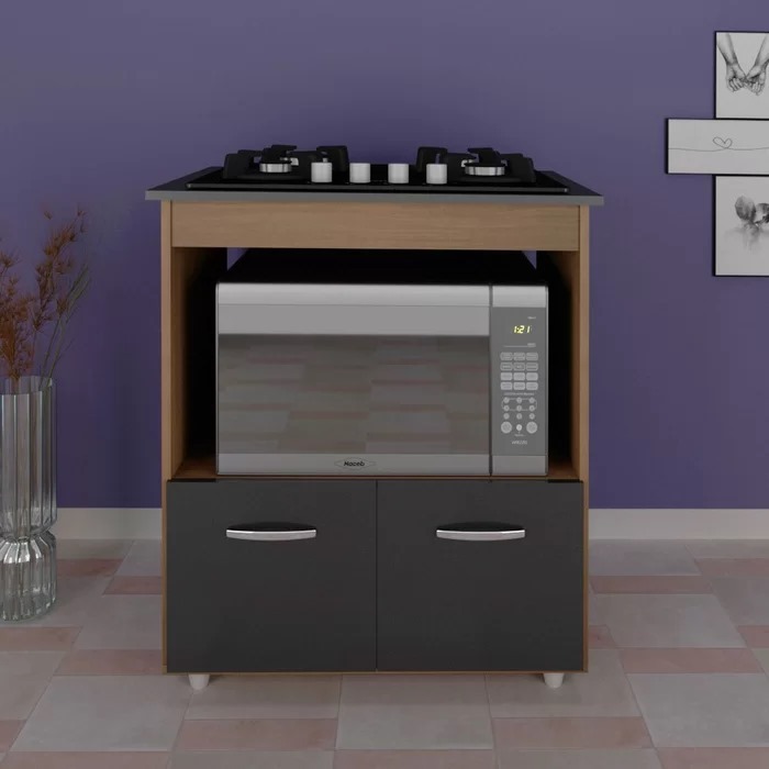 Balcão de Cozinha Para Cooktop 4 Bocas Gabinete Armario Para Fogão 4 Bocas Branco e Savana com Preto