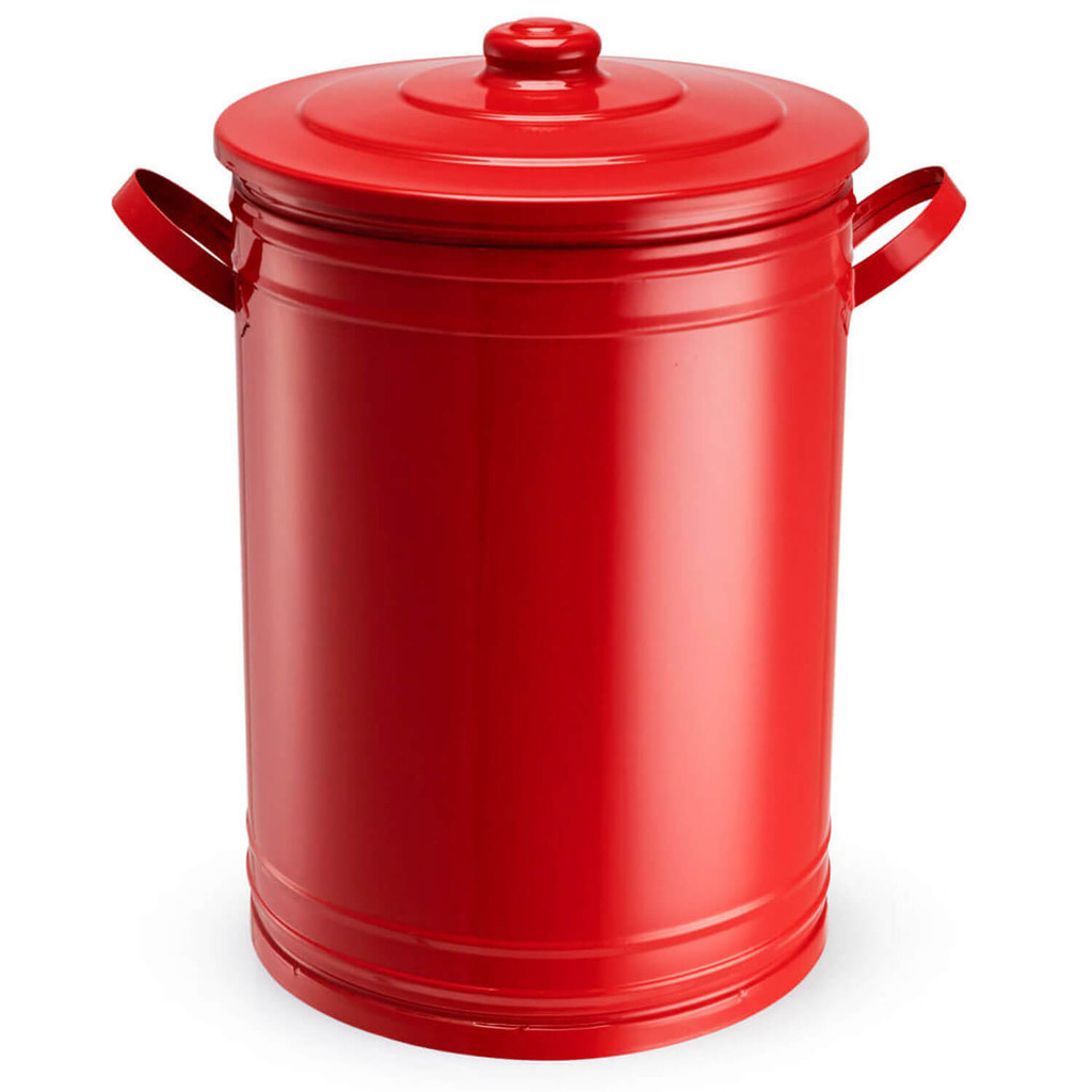 Lixeira 30 litros vermelha lata de lixo com tampa e alças