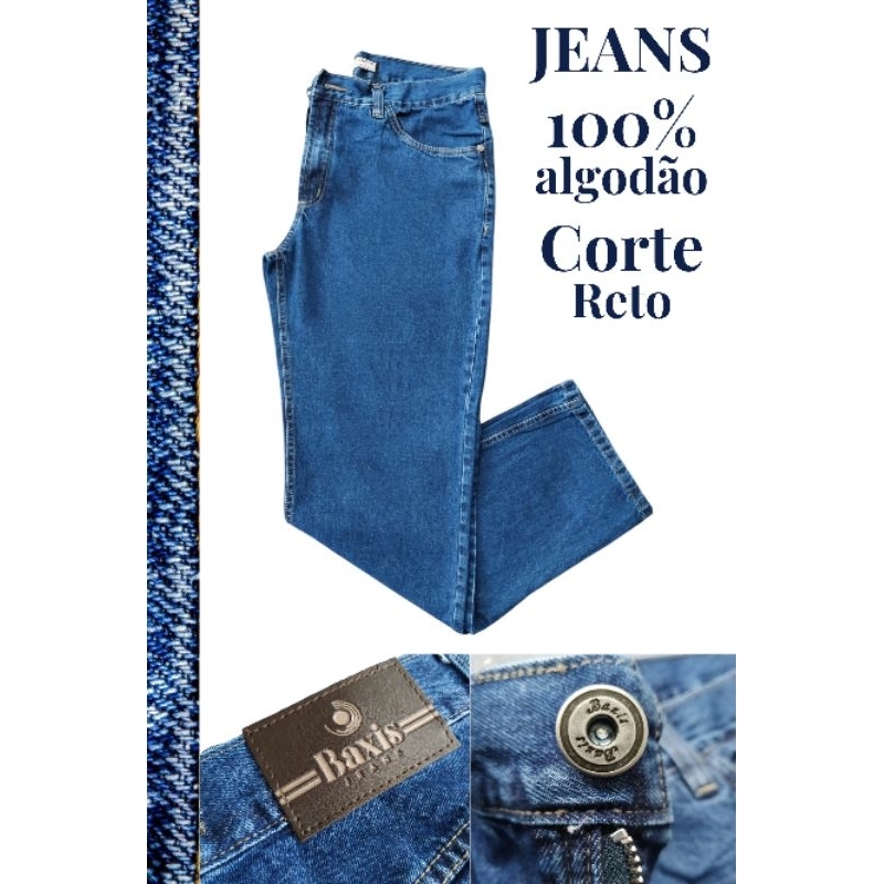 calça jeans tradicional reta modelo antigo 100% algodão