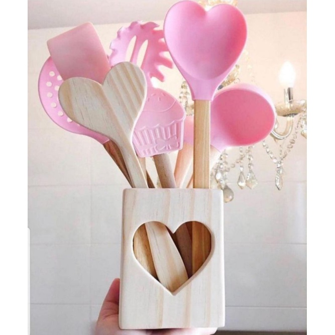 Porta Talher com espátula de coração em Pinus