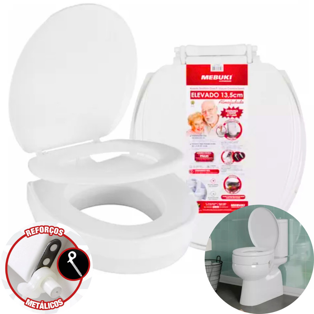 Assento Sanitário Elevado Almofadado 13,5cm Tampa Vaso Reforçado P/ Idosos Deficiência Pós Cirurgia