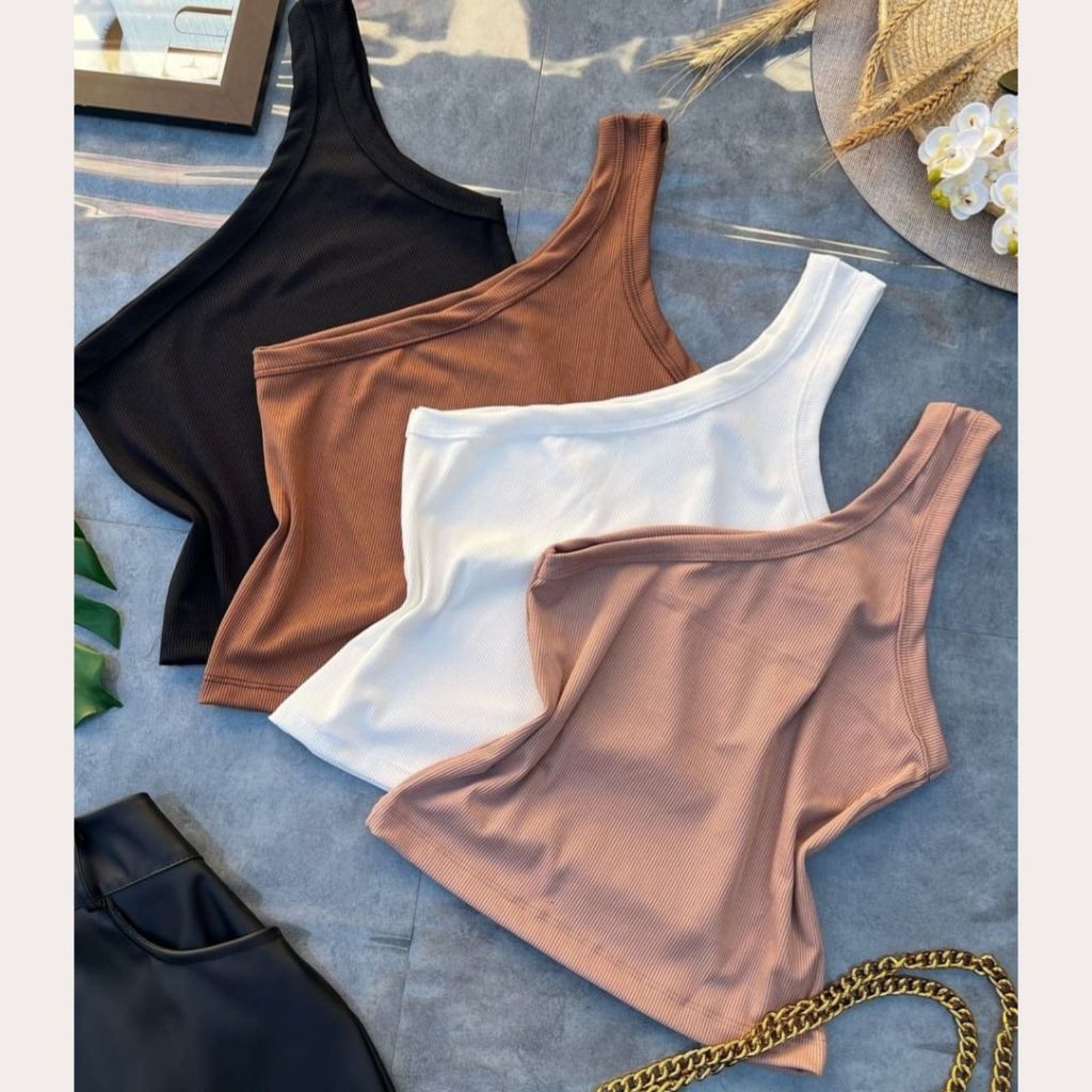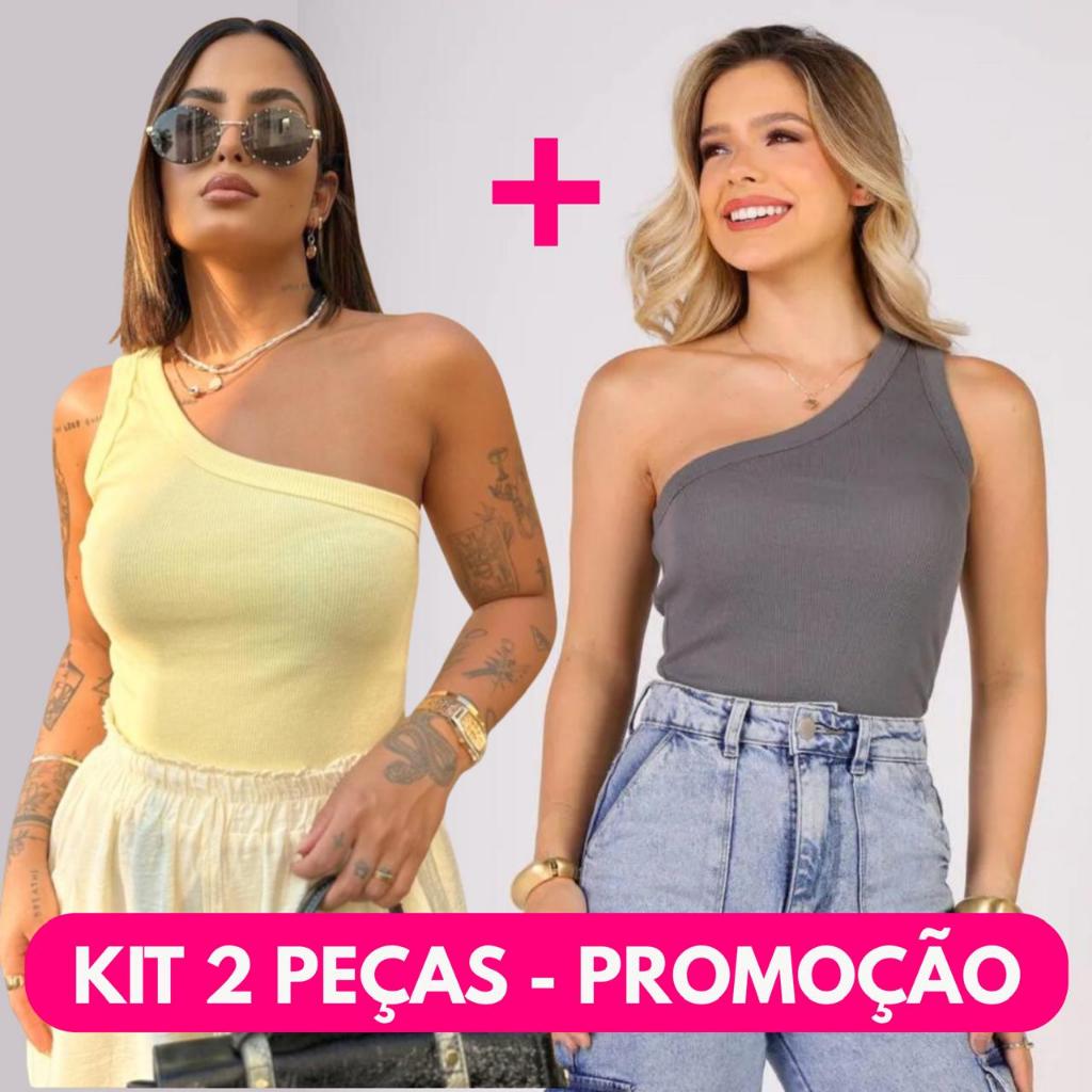 KIT 2 CROPED MULA MANCA COM FORRO DUPLO UM OMBRO SÓ LANÇAMENTO MODA ESTILOSO NULA MANGA