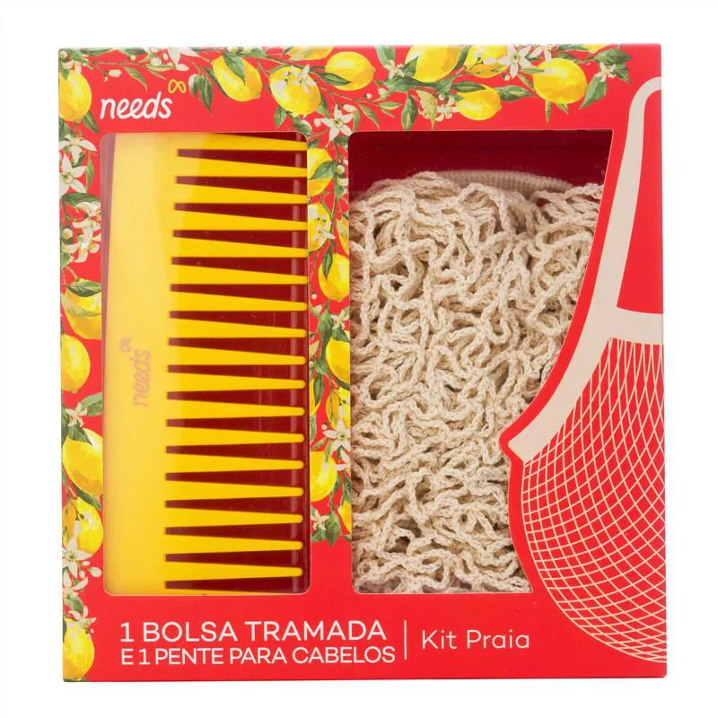 Kit Praia Needs Bolsa de Rede + Pente de Cabelo