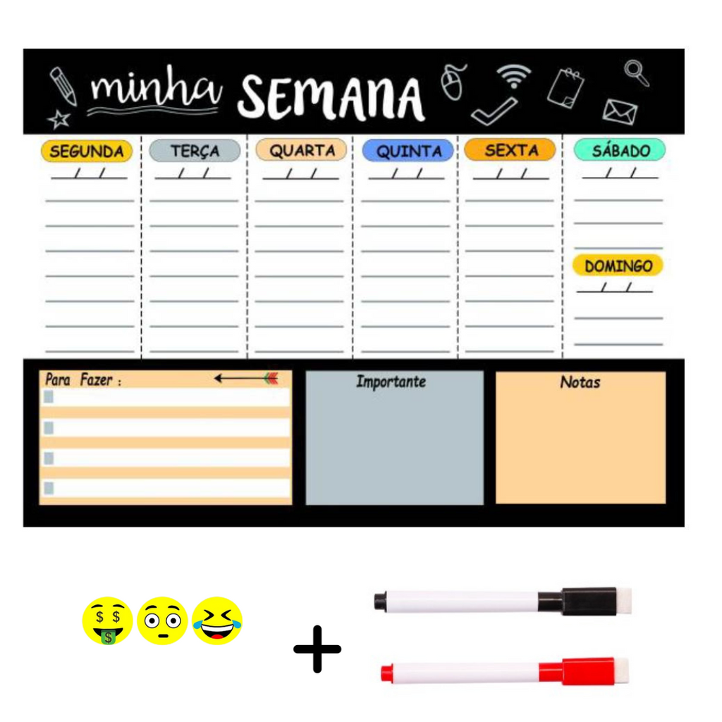 Quadro Lousa Planner Planejamento Diário Semanal Mensal De Parede Magnético Para Organização De Tarefas Atividades Rotina