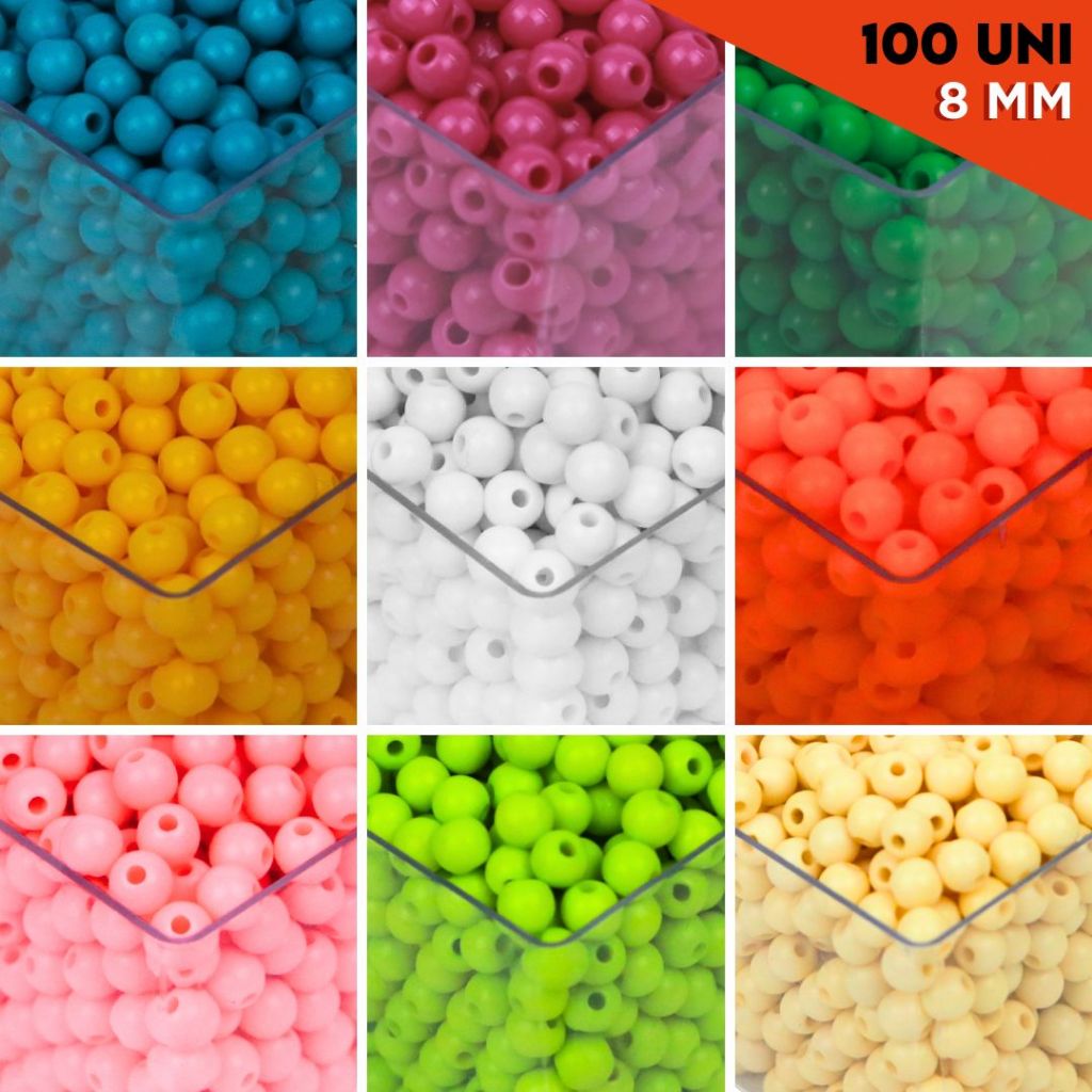 Pérola Plástica - Leitosa 08 Mm Pacote Com 100 Unidades - Diversas Cores - Criar