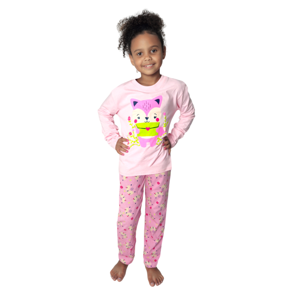 Pijama Infantil de Menina manga longa 100% Algodão macio e confortável