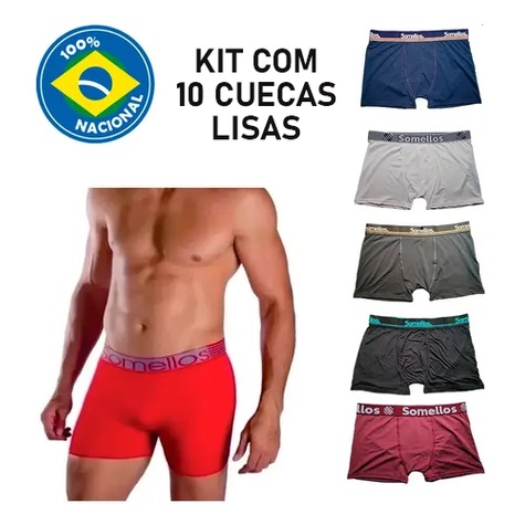 Kit 10 Cuecas Boxer Lisas Adulto Conforto Vestuário Roupa Íntima Acessório Masculino Original Somellos Microfibra