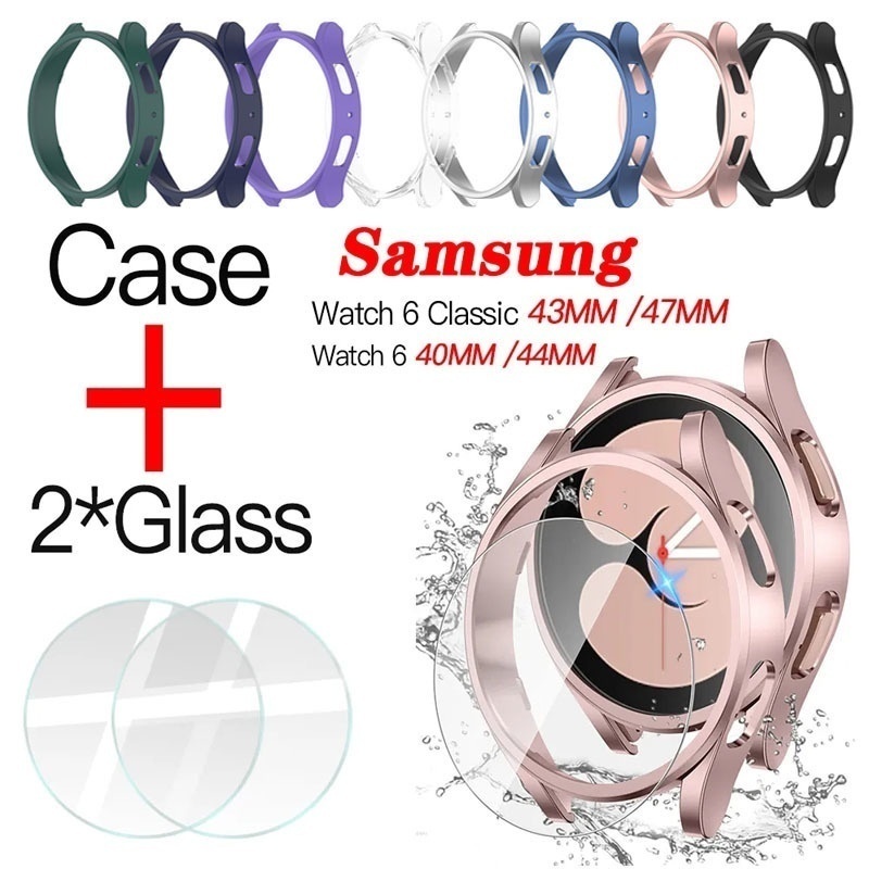 2 * Vidro + Capa Para Samsung Galaxy Watch6 40mm 44mm PC À Prova D'água Relógio 6 Clássico 43mm 47mm Protetora + Protetor De Tela
