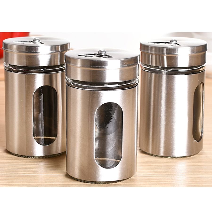 Kit Com 3, 6 e 12 Porta Condimentos Aço Inox Saleiro Pimenteiro Temperos Visor Vidro