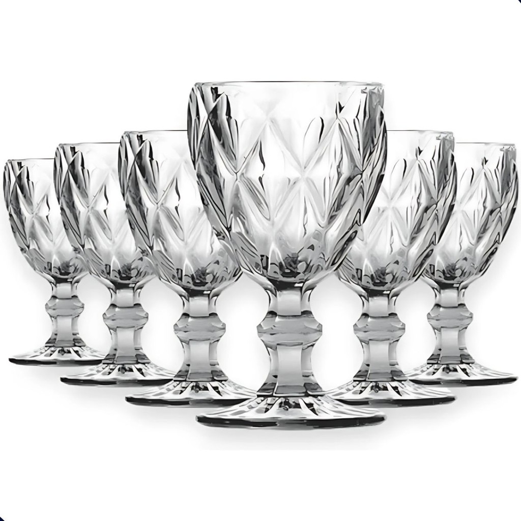 Jogo Com 6 Taças Modelo Diamante Diamond Transparente em Vidro 340ml Cristal Ecológico Fácil de Limpar Pratico Ótima Qualidade Excelente Taça para Vinho e agua